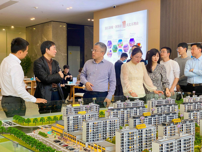 5月1日上午,景德鎮(zhèn)市國控集團黨委書記、董事長余笑兵蒞臨濱江新城·國博府項目指導工作,首先在國博府營銷中心仔細聽取了項目沙盤的講解,包括項目的規(guī)劃、產品、進度和銷售情況,隨后參觀了三個戶型的樣板房,并詳細聽取了國博府項目的開發(fā)理念、市場定位、營銷計劃和未來規(guī)劃等匯報。