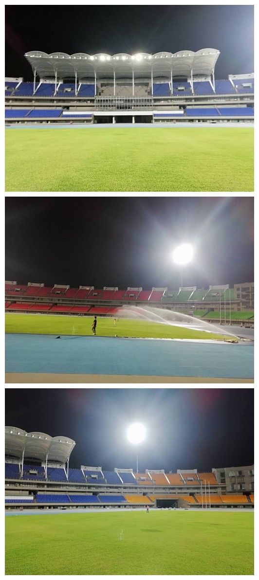 據(jù)了解,該任務分為賽事顯示屏、場館外部亮化和場內(nèi)賽事智能照明設備供應安裝三部分,其中最引人矚目的是場內(nèi)賽事智能照明燈具供應安裝。這是用于體育館場內(nèi)賽事照明使用的4桿賽事照明高桿燈。它們是國信節(jié)能公司自成立以來安裝過的最大、最高的照明燈具,同時也是省內(nèi)最大、最高的體育照明燈具,是全省田徑場館中首個采用大功率LED的綠色智能照明燈具,具有節(jié)能環(huán)保、無有害物質(zhì)排放等特點。