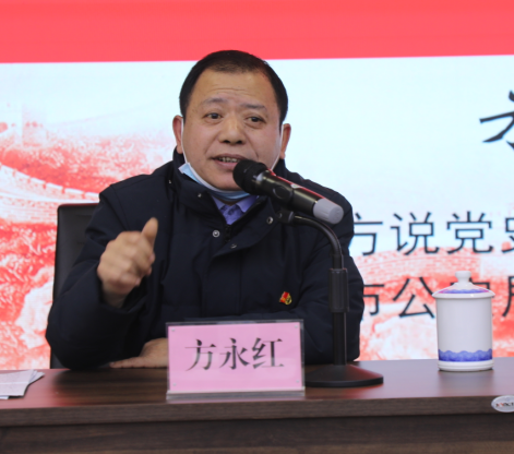 1月5日下午,市國控集團學(xué)習(xí)貫徹黨的二十大精神宣講報告會舉行。市委宣講團宣講員、老方說黨史宣講團名譽團長、市公安局三級高級警長方永紅同志作宣講報告,集團黨委書記、董事長余笑兵主持報告會,集團領(lǐng)導(dǎo)班子成員、公司各部門負(fù)責(zé)人、各子公司主要負(fù)責(zé)人和各基層黨組織書記,共計40余人參加會議。