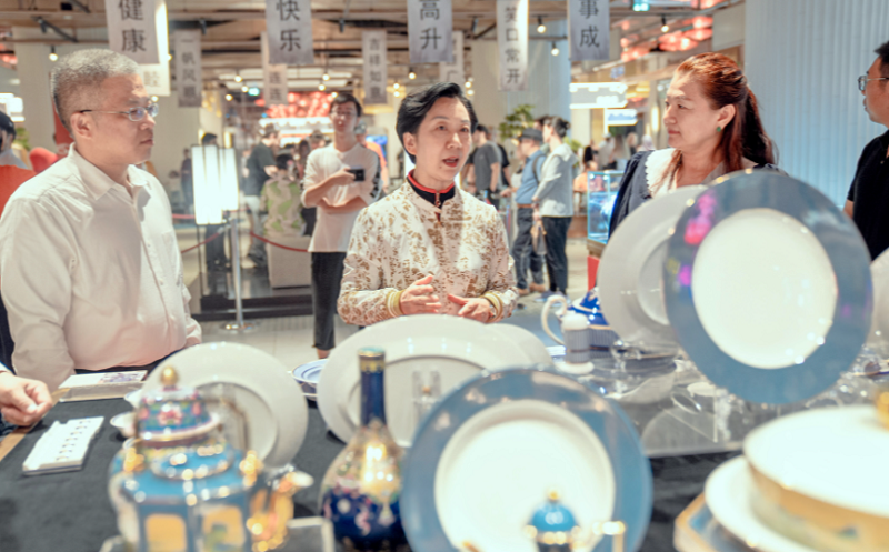 胡雪梅在景德鎮(zhèn)陶瓷官方旗艦店實(shí)地調(diào)研。