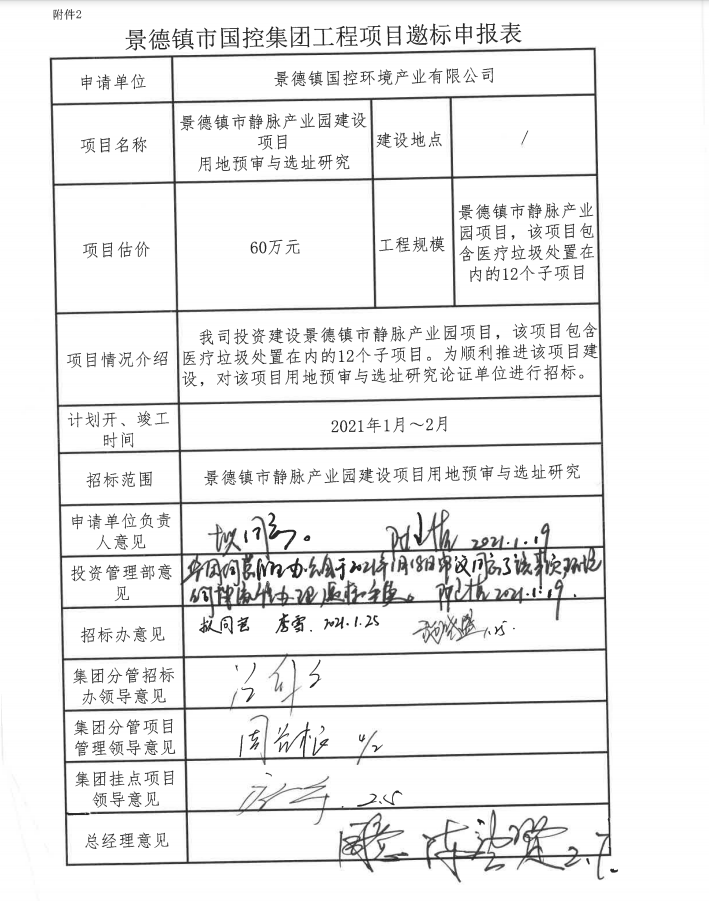 景德鎮(zhèn)市靜脈產業(yè)園建設項目用地預審與選址研究,由景德鎮(zhèn)國控環(huán)境產業(yè)有限公司作為邀標人,擬通過邀標方式確定中標人,誠邀符合資格條件的潛在投標人參與本項目的邀標,現(xiàn)將有關事宜公告如下:
